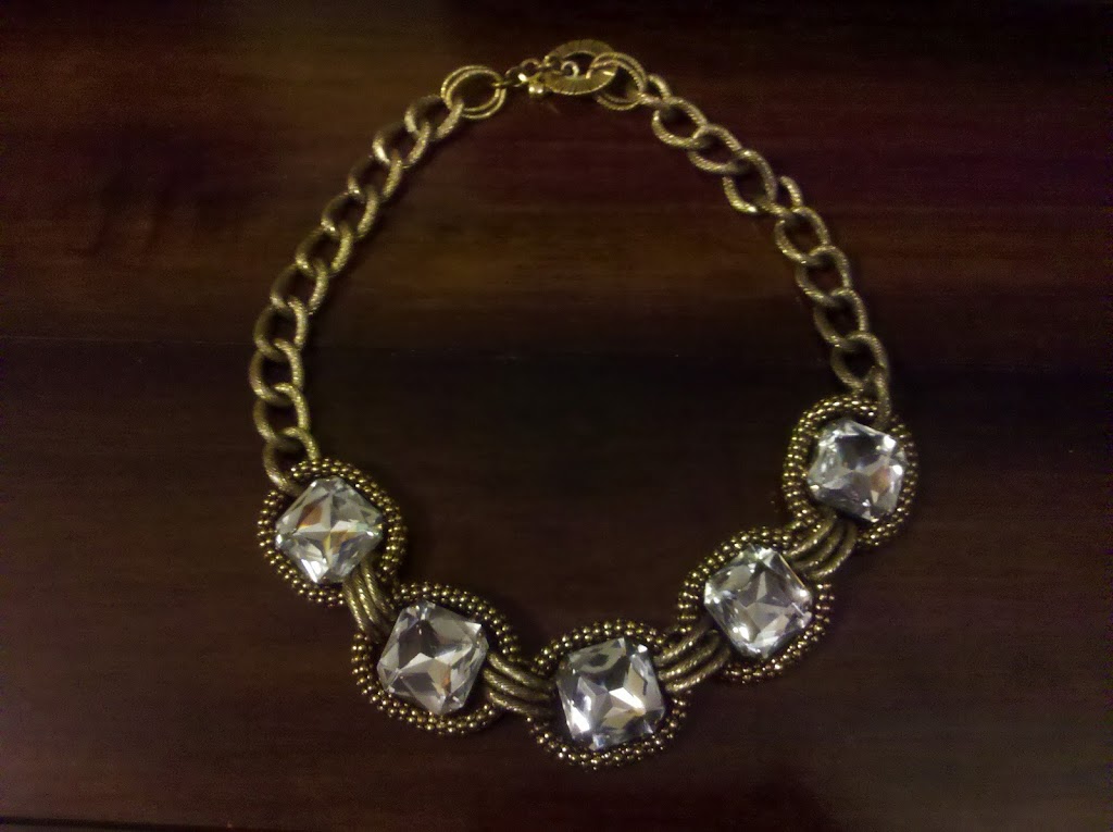A gold encrusted necklace with glass setting stones which will go to one winner.